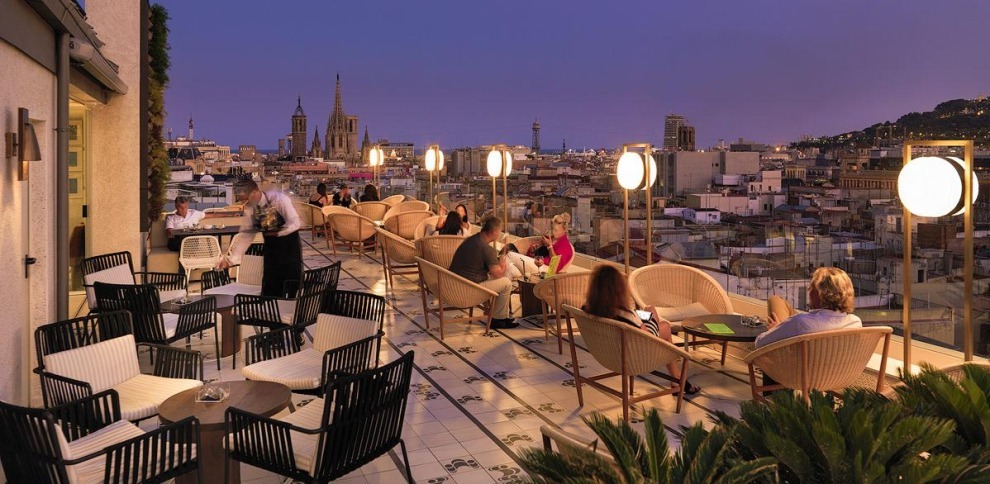 One of the most central and photogenic terraces in Barcelona. It has skyline and Cathedral views, a small pool, colorful cocktails, and a chill atmosphere. Perfect for a drink after walking through the Gothic Quarter or for watching the sunset without leaving the center.