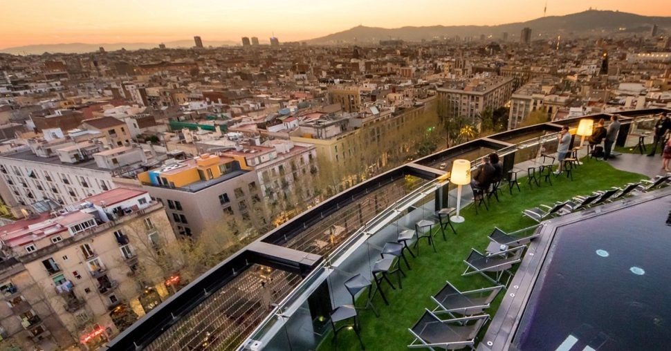 The highest rooftop in Barcelona. From here you can see the whole city, the sea, and even the mountains. It has a more exclusive vibe, a Japanese-inspired menu, and top cocktails.