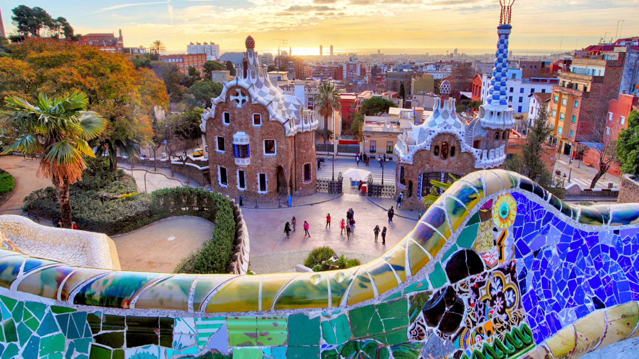 💡 Curiosity: The famous mosaic lizard (“el drac”) at the entrance became an icon of Barcelona. Gaudí used a technique called trencadís — breaking leftover tiles into pieces to create new art — basically inventing recycling in design.
